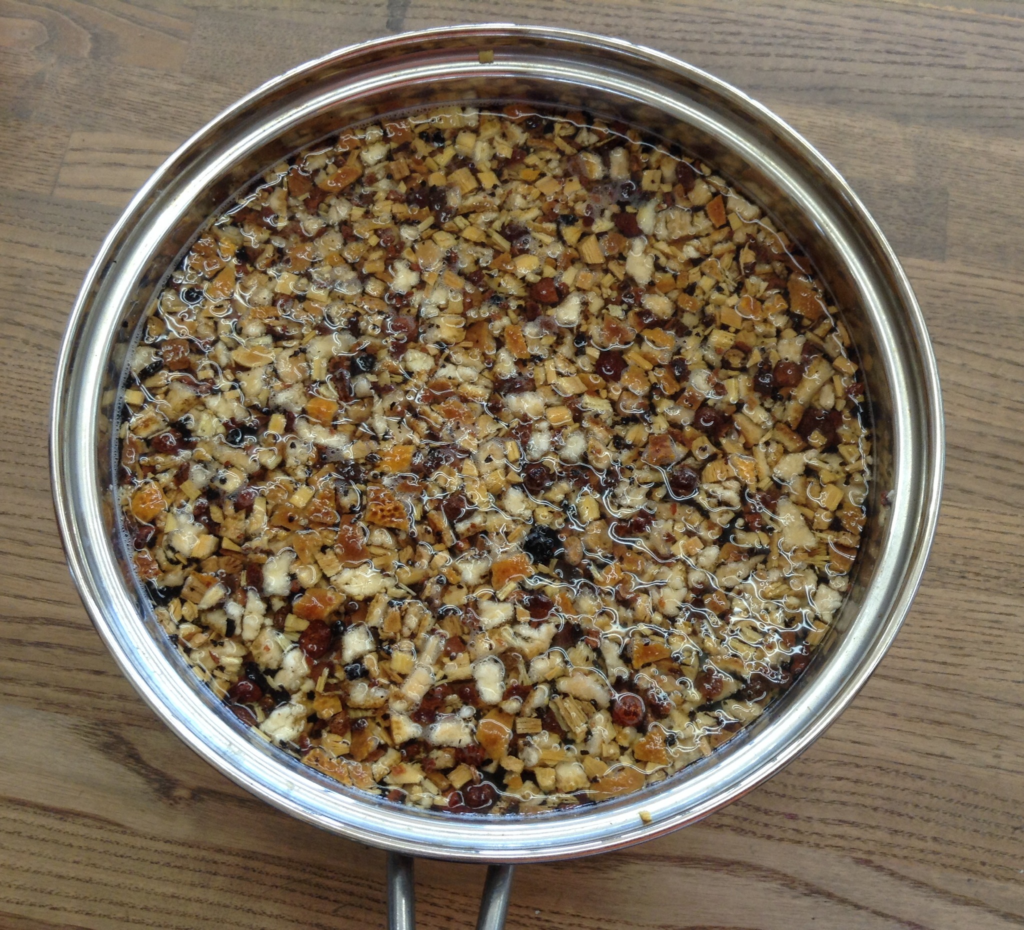 材料は烏梅(ウバイ)、山査子(サンザシ)、陳皮(チンピ)、甘草、氷砂糖(蜂蜜)